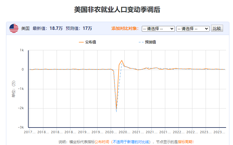此前就业数据显示上个月就业人数增加了187,000个,高于路透社对经济学家的调查结果为170,000 个。