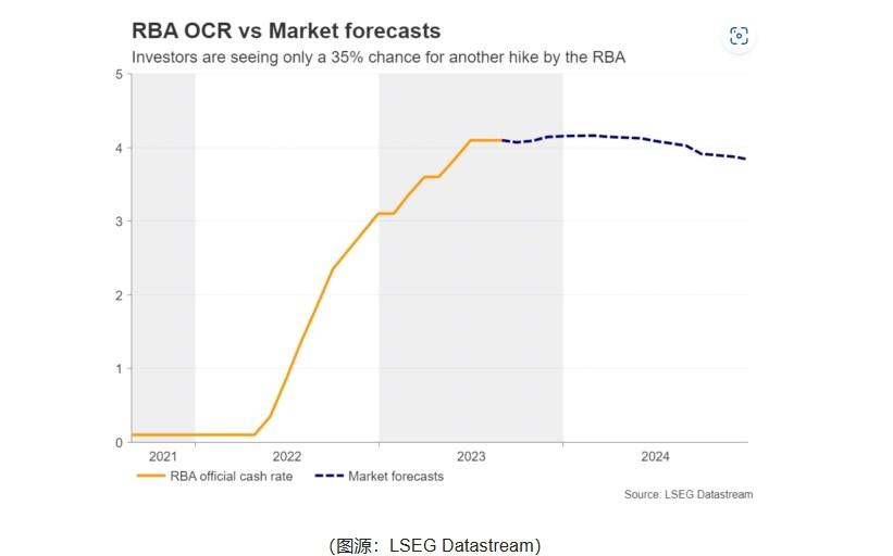 话虽如此,但随着核心月度CPI同比仅从6.1%下滑至5.8%,仍远高于央行2-3%的通胀目标区间,关闭进一步加息的大门可能是一个不明智的选择。因此,如果政策制定者重申可能需要进一步收紧的指引,即使他们在这次会议上保持不变,那么在今年年底前再次加息的可能性就会上升,从而帮助澳元延续最近的复苏。