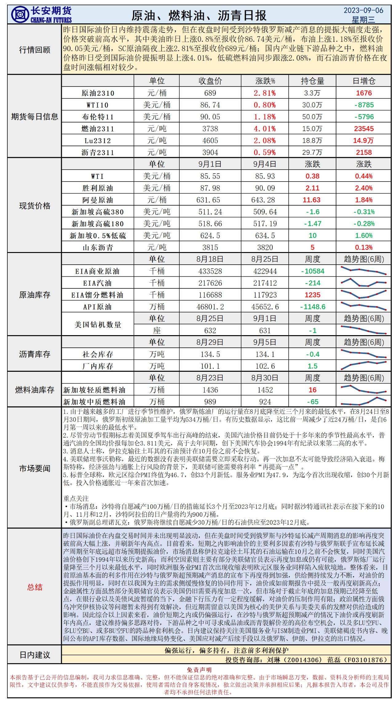 标题:长安期货9月6日原油早评:减产落地远超预期,油价上行动力十足刷新高点