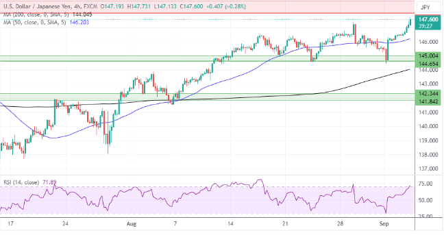 美元/日元正朝着148.00 – 149.00区间的强力阻力位移动。高于这一水平的举动可能会迫使日本央行提出稳定日元的干预措施。
