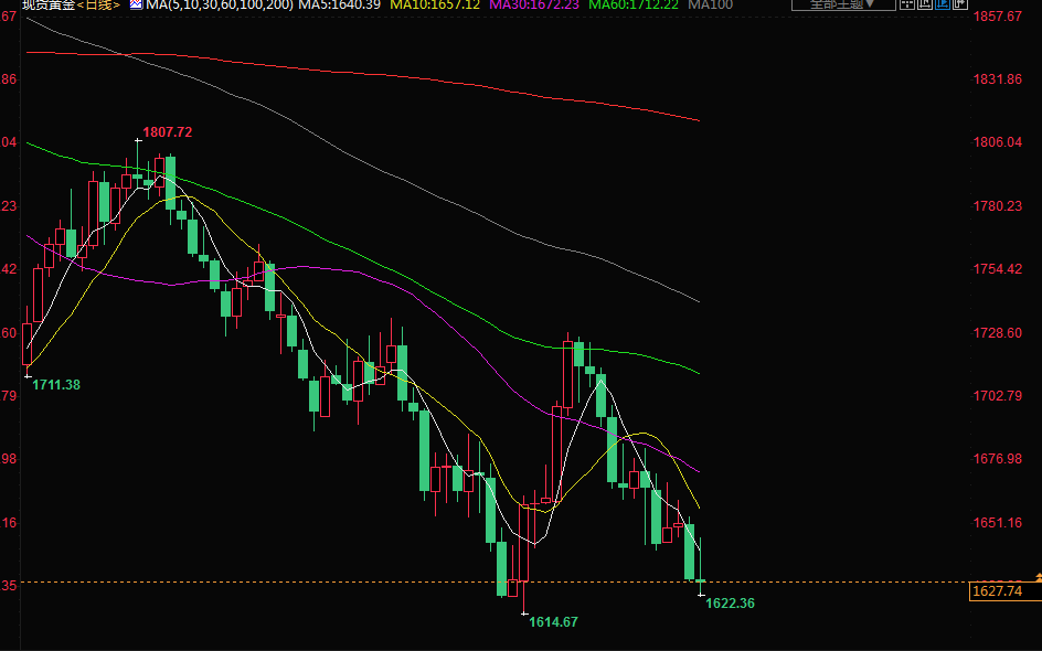 费城联邦储备银行主席哈克表示,在高通胀水平下,美联储还没有完成提高短期利率的目标。美国利率上升增加了持有非孳息黄金的机会成本。