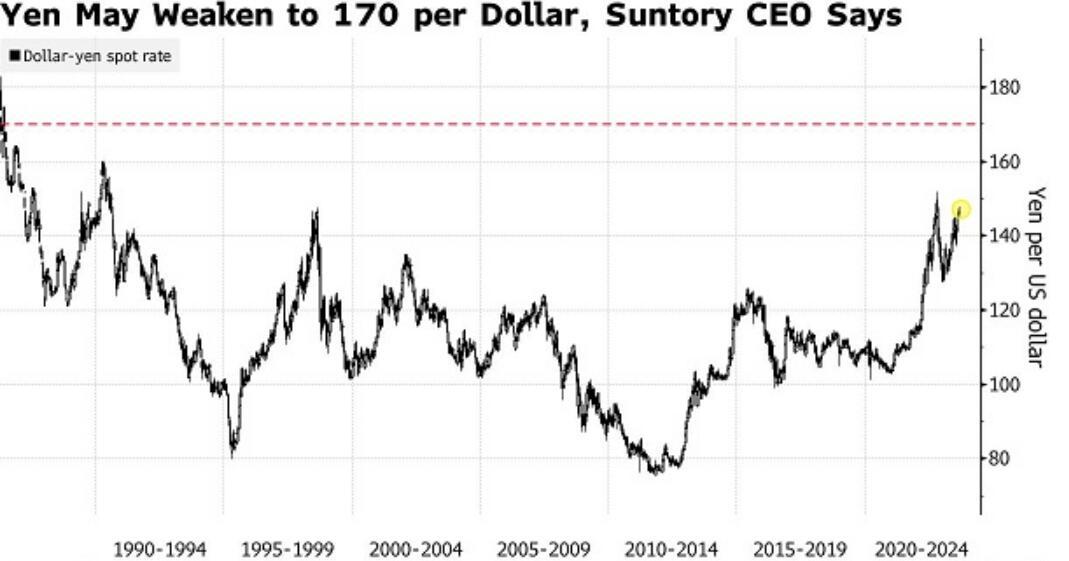 标题:三得利CEO:日元兑美元恐暴跌至170