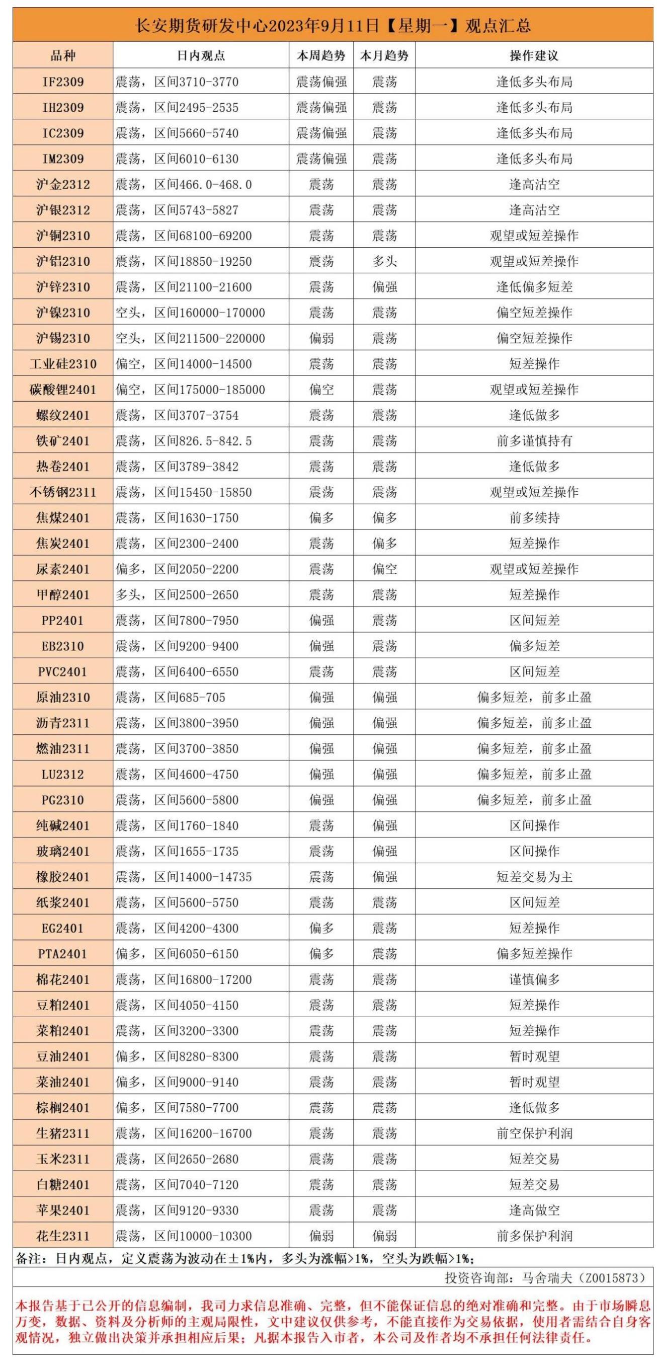 标题:长安期货9月11日早间看盘