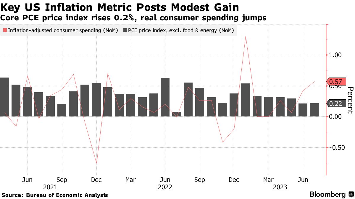 最近几周的报告让人确信通胀热潮正在结束。美国经济分析局上周的一份报告显示,美联储首选的衡量潜在价格压力的指标出现了自 2020 年底以来的最小连续涨幅。6 月和 7 月核心个人消费支出价格指数上涨 0.2%,低于今年前 5 个月近 0.4% 的平均涨幅。