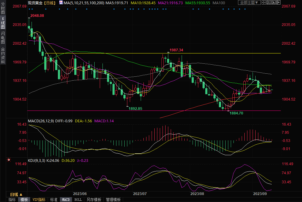现货黄金价格周一高开高走,一度突破了1930美元/盎司的关口,但由于支撑力不足,最终以1922.26美元/盎司的价格收盘,上涨了3.61美元/盎司,涨幅为0.19%。