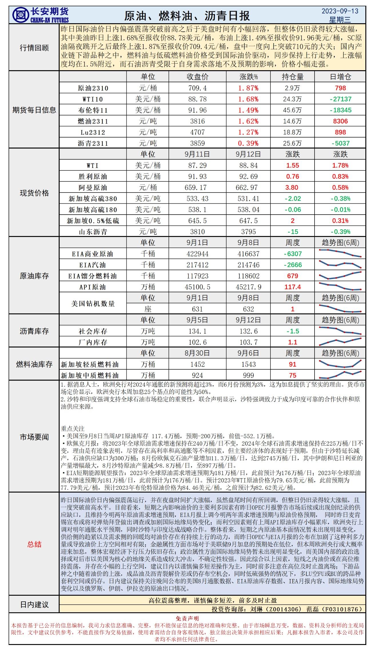 标题:长安期货9月13日原油早评:机构月报利多油价,日内关注美国通胀变化