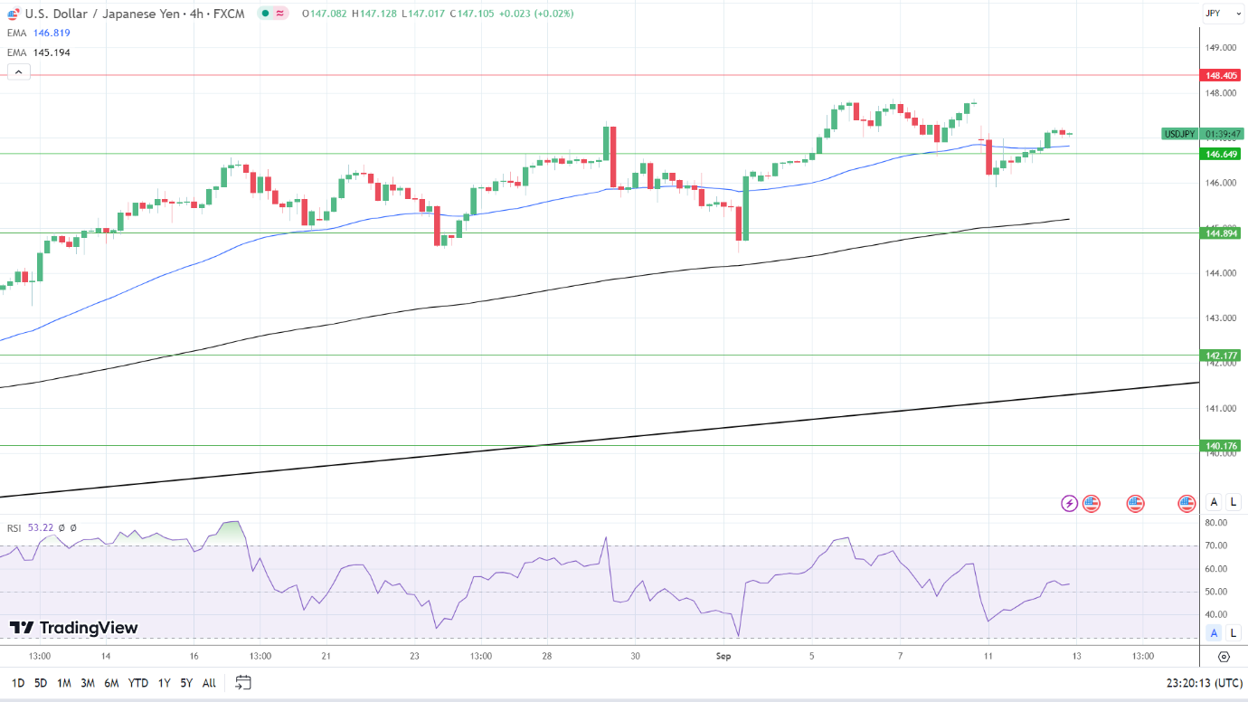 然而,守住50日均线上方将支持美元/日元向148.405阻力位移动。14-4小时RSI读数为53.22,表明美元/日元将突破148,然后进入超买区域。