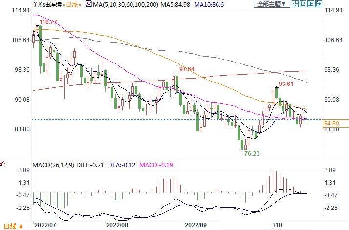 美原油下跌约0.78%,相比上周下跌8.08%,跌幅有所收窄。布油亦下跌0.69%左右,而上周下跌7.10%。市场预期亚洲地区疫情管控措施将逐步放松,一改上周对经济衰退的悲观情绪,乐观情绪重燃,这支撑了国际油价。投资者重新评估全球央行大幅加息对能源消费的影响。截止北京时间10月21日19:43,