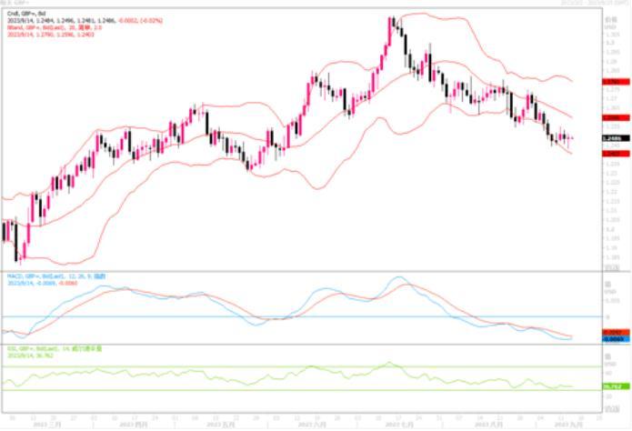 周三仍然保持在近期的高位区域。日内,欧央行将召开利率会议,如果欧央行维持利率不动,那么势必降低今后继续加息的押注,欧元将会遭到冲击。相反若欧央行加息25个基点,则欧元/美元或能得到一定的抬捧出现反弹性的上升。日线图上,纯从各类技术指标来看,似有底背离产生的痕迹,MACD信号线有形成金叉的迹象。要提放短线超卖调整反弹的风险。就整体而言,欧元/美元仍处在布林带中轨之下,维持着完好的下降通道形态。