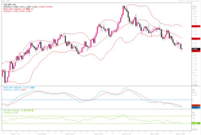 报1.2409美元,日内下跌0.68%,此前曾跌至三个月低点1.2397美元。周四的一项行业调查显示,8月英国房价出现14年来最普遍的下跌,因抵押贷款成本上升、经济存在不确定性的背景下,住房需求减弱。当前只要英国任何一项经济数显弱,都将大大降低英国央行进一步加息的预期和押注。而当天晚些时候美国公布的数据具体情况则均强于预期,美国8月零售销售环比增长0.6%,高于预期的增长0.2%,而上周初请失业金人数增至22万,但低于预期的22.5万。汽油价格上涨也影响了最新的通胀数据,8月最终需求生产者价格指数(PPI)环比上涨0.7%,高于预期的上涨0.4%。加上前日公布的恢复增长的通胀数据CPI,即使预期9月份美联储按兵不动,亦不能排除年内11、12月份或还会有加息举动的可能性。对于两家央行货币政策未来走向预期变化,继续左右着镑美的走向。日线图上,英镑/美元大有破位加速下行的趋向,下行通道继续在延伸。中长线的周线、月线级别图亦显示出明显的下行趋向。近期应主防镑美继续探低风险。
