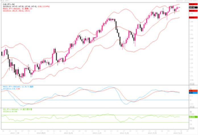 却显得较为稳当,继续驻留在数月高位147.48附近。虽然本周反映美国通胀增长的数据均超过预期,但对于9月份美联储的加息,普遍预测将会按兵不动,因此或许从这方面考虑给到日元舒缓压力的机会。此外,由于美元/日元已来到了年内的高点,且距离上年的高点亦不远,忌惮日本央行将会有干预举动的防范心里变得敏感。因此,在无重大刺激因素,尤其是来自日本方面的,恐怕美元/日元暂时较难冲击更高峰。日线图上,若美元/日元不能冲破上周创下的高位147.87,恐怕会进入短期的区间震荡走势之中。留意波动的区间或主要集中于148.50-144.50之间。