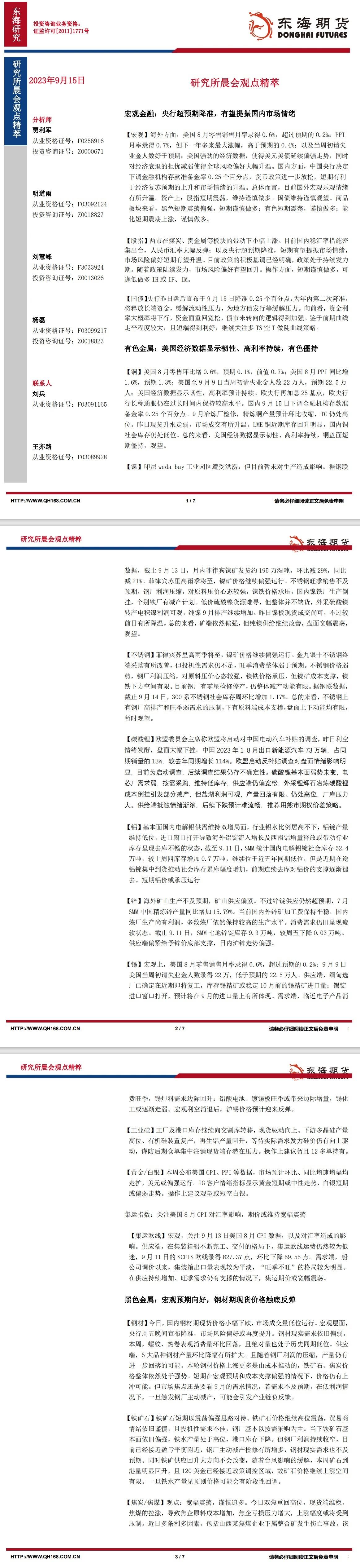 标题:【东海期货9月15日研究所晨会观点精萃】央行超预期降准,有望提振国内市场情绪