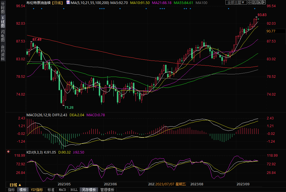 布伦特原油期货均跃上90美元/桶高位。