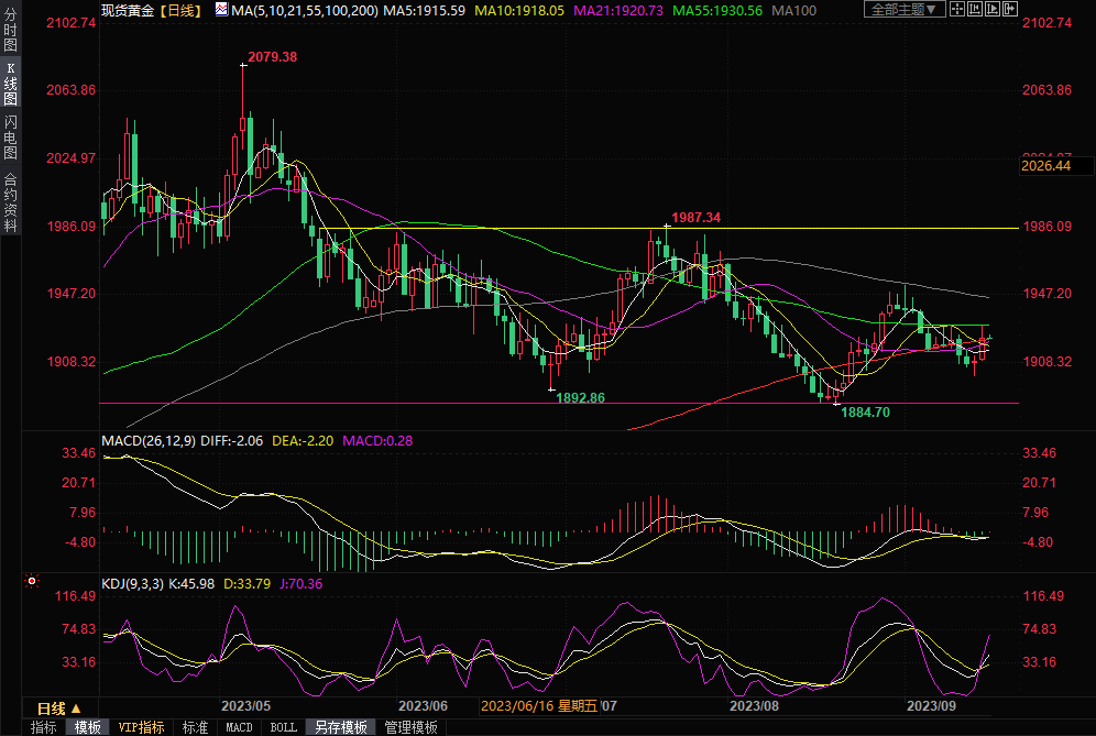 现货黄金收报1923.64美元/盎司,收涨13.02美元/盎司(或0.68%),周涨幅0.26%。周一(9月18日)亚市盘初,