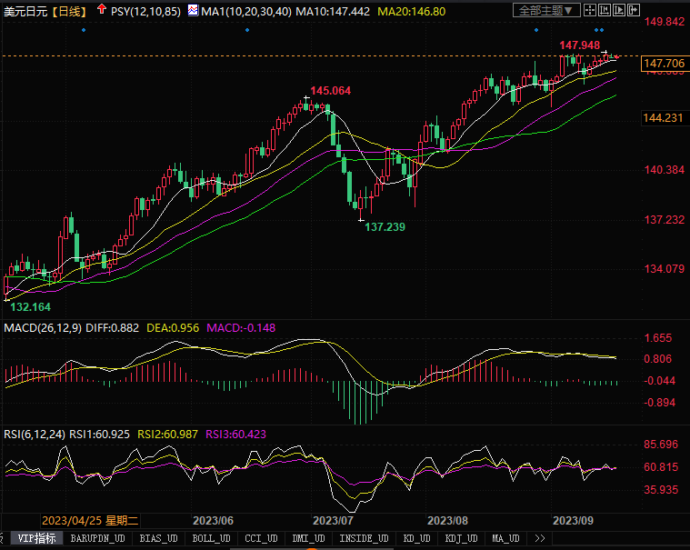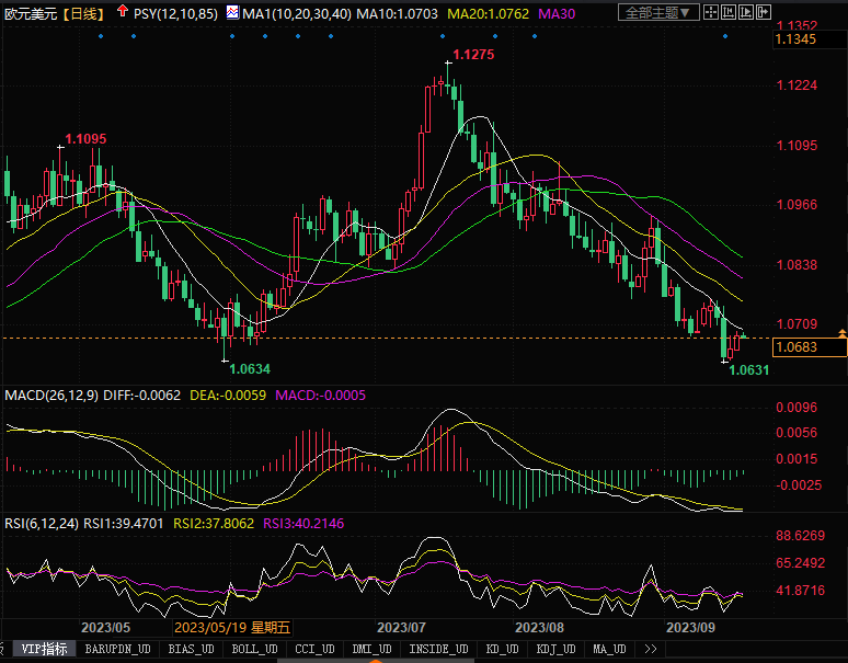 继续略微上涨0.23%,报1.0683美元。美国经济增长的韧性推动美元在最近几周反弹,但这波涨势可能会受到一系列数据和周三美联储利率决定的考验。周一的数据显示,由于高利率削弱了潜在购房者的承受能力,9月美国住宅建筑商信心连续第二个月下滑,乐观情绪降至4月份以来最低。数据将有可能令美联储本周的利率会议上继续按兵不动。有权威人士分析认为,从点阵图来看,风险天平确实会略偏鸽派,但这应该不会显著影响美元的长期看涨趋势,因为外汇市场显然关注相对增长动态,而美国迄今为止仍然是糟糕的10国集团(G10)中表现最好的国家。目前