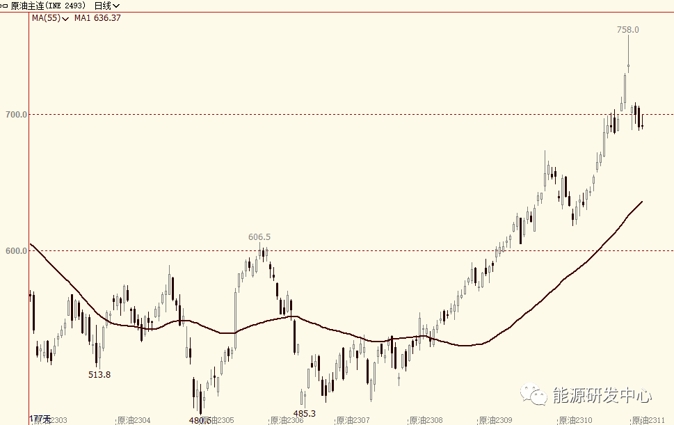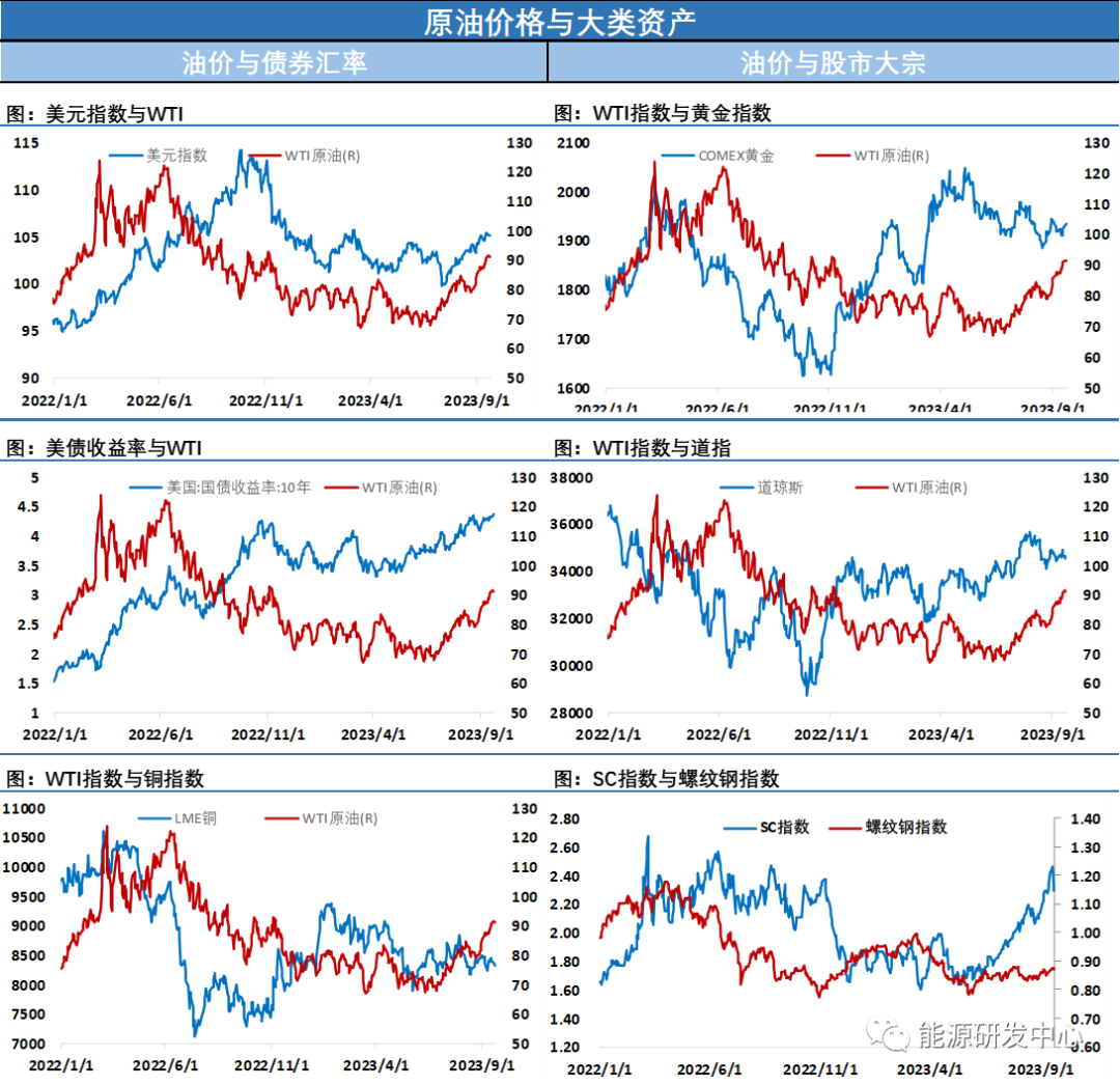 但当天最重磅的影响因素是美联储利率决议,虽然九月如期维持利率不变,但美联储同时还表示如合适预计年底前将再次加息,并且明年的降息幅度将少于此前的预期。鲍威尔强调持续的高能源价格将影响通胀预期,美联储转向偏鹰派重挫市场风险偏好,美元大幅反弹,股市、大宗商品等全线回落,可以看出重新走强的油价还是影响到了宏观政策。近期各大投行对油价后市观点出现了明显分歧,即有乐观看涨油价突破100美元,也有判断减产作用已经基本计价,油价后期触顶回落概率大,这种现象也反映出随着油价到了高位区域后市的变数也开始增加。