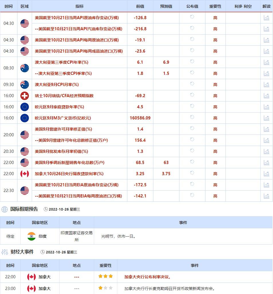 ③10月26日(周三)关键字:美国截至10月21日当周API和EIA原油库存变动,加拿大央行利率决议