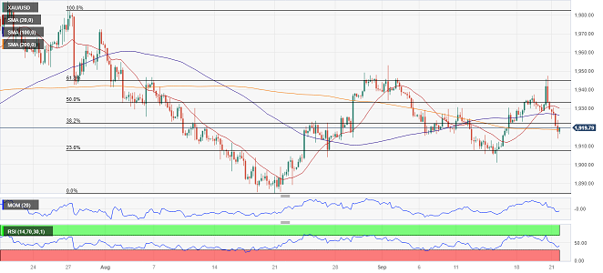 周五(9月21日)亚市盘中,现货黄金在昨日重挫后小幅反弹,金价现报1923美元/盎司附近。FXStreet首席分析师Valeria Bednarik最新撰文,对黄金技术前景进行分析。