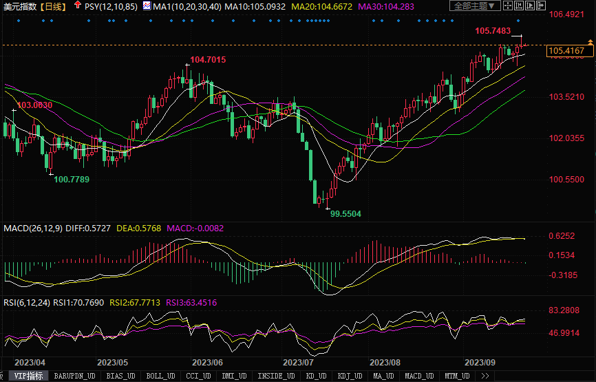 美国银行全球研究技术策略师保罗·西亚纳( Paul Ciana)发布的报告中表示:“这支持了我们对2023年第四季度技术走势的看法,即美元将得到支持并有可能更加强劲。”这份报告是在本周三(9月20日)发布的备受期待的美联储利率决定之前发表的。美元指数在决定公布前的美东时间下跌0.47%,报104.707。