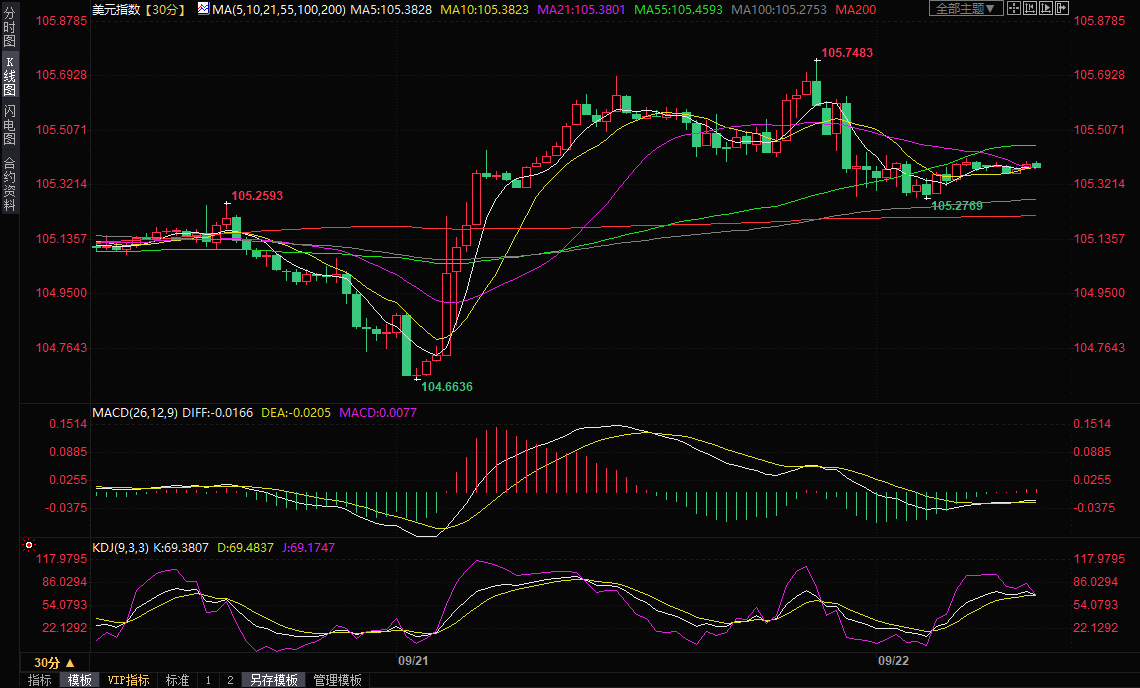 截止周四收盘,美元指数交投于105.38一线,较日内高点105.73回落逾30点。