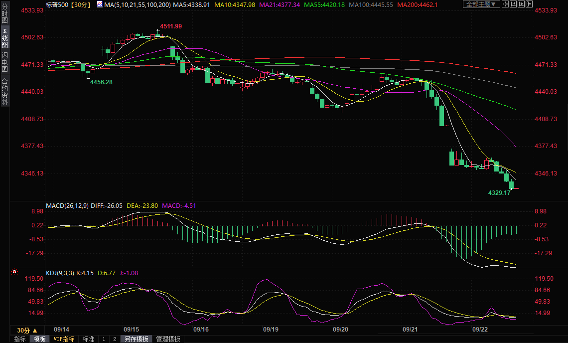 周四(9月21日),美国公布的初请失业金数据表现强劲,但成屋销售等数据表现不佳。受此影响,美元指数冲高回落,收盘接近持平。而英镑和瑞郎则分别受到英国央行和瑞士央行按兵不动的打击而下跌。股市方面,随着市场继续消化美联储在更长时间内维持高利率水平,美股连续第三日下跌。