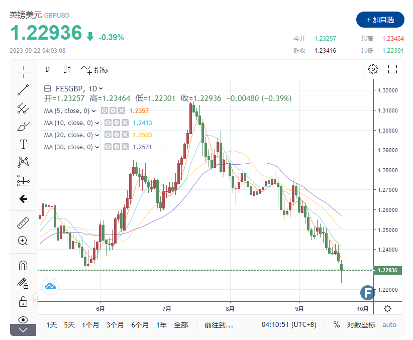 英国央行以5比4的投票结果决定维持利率不变,其中英国央行行长贝利投出了决定性的一票,英镑/美元大幅下跌,在触及日高1.2331后,目前交投于1.2295。