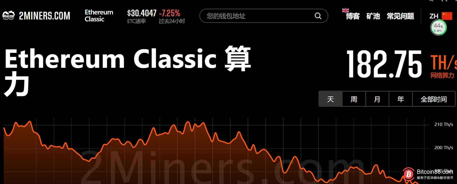 ETC全网算力跌至182.75TH/s 24小时跌幅7.25%