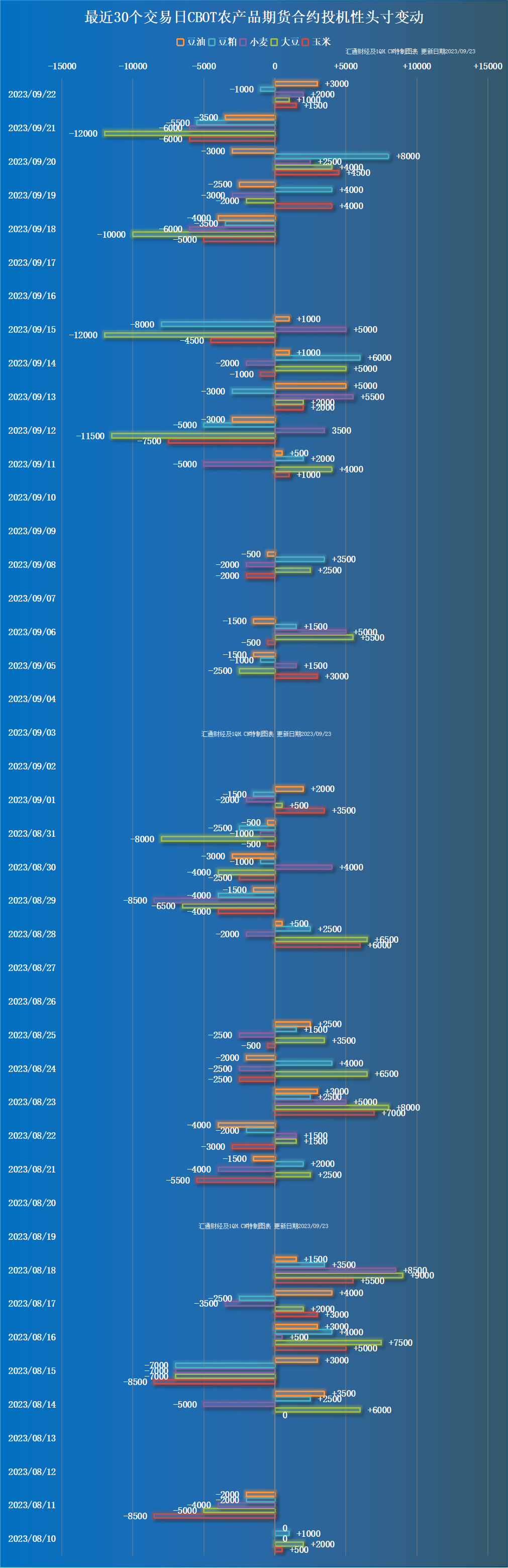 汇通财经APP讯——交易商估算的结果显示,大宗商品基金9月22日增加玉米、豆粕、小麦、大豆、豆油投机性净多头寸,增加豆粕投机性净空头寸。最近30个交易日,大宗商品基金增加小麦、玉米、大豆、豆油、豆粕投机性净空头寸。