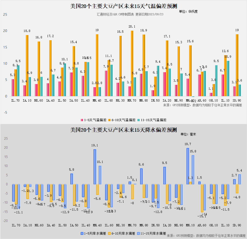 综合GFS和EC模型,预计在未来10天内,美国中部地区将变得越来越温暖,降水也有减弱的趋势。总体而言,除了大平原地区未来几天将有降雨外,短期前景表明,对美国冬小麦种植和玉米、大豆、春小麦作物收获的条件基本有利。