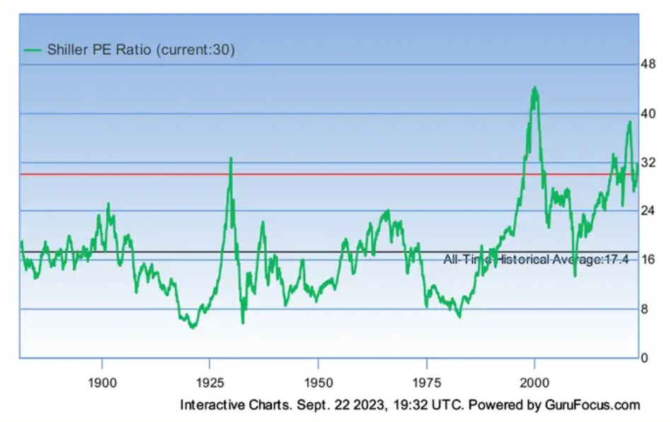 从席勒周期性调整市盈率(CAPE)和市值占GDP(也称为沃伦·巴菲特指标)等指标来看,估值处于历史高位。虽然这两项指标均低于历史高点,但接近1929 年、2000年和2008年泡沫时期的水平,并且高于长期平均水平。