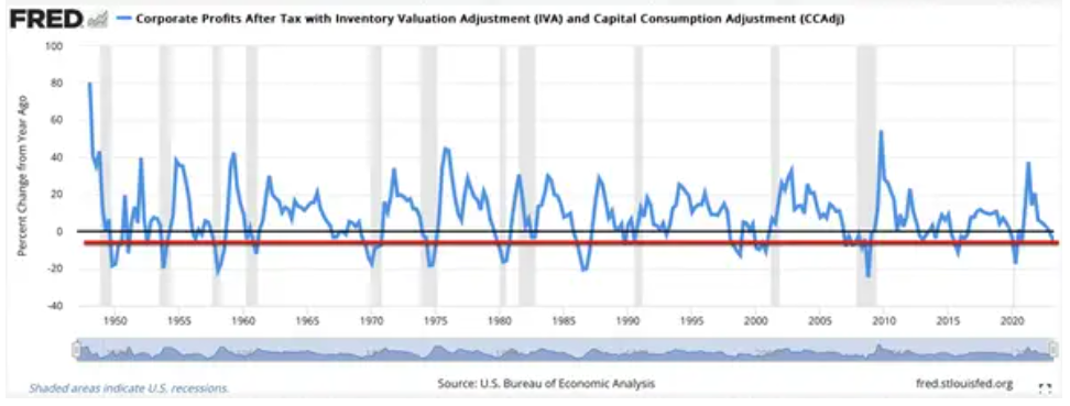 这只是企业利润出现负增长,这种现象往往预示着经济衰退时期。