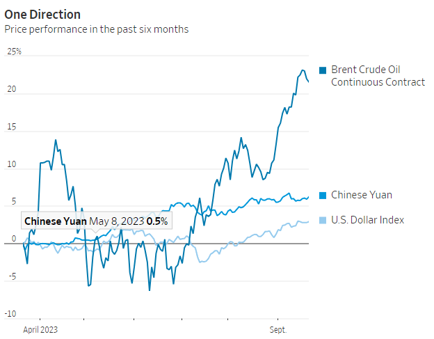 以美元计算,布伦特原油价格今年迄今已上涨约7.4%。以人民币计算,上涨了13%。尽管俄罗斯石油的价格上限有助于缓解这种影响,但中国和印度也从其他国家采购石油。