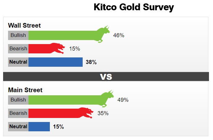 最新的Kitco News每周黄金调查显示,市场分析师分为看涨和中性,而散户投资者预计金价会向上或向下突破近期交易区间。