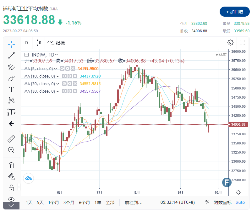 周二(9月26日),华尔街主要股指收跌逾1%,10年期美国国债收益率维持多年高点,投资者仍在努力应对长期高利率的前景及其对经济的影响。