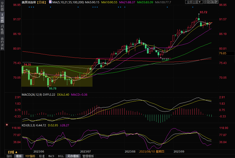 WTI 11月原油期货收涨0.71美元/桶,涨幅0.79%,收报90.39美元/桶。