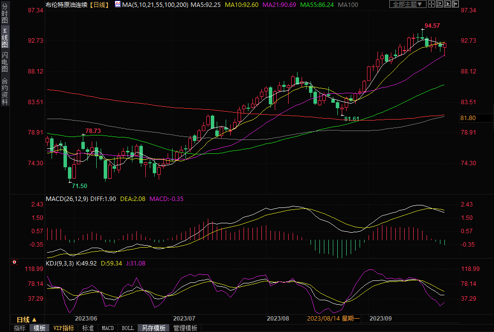 布伦特原油期货收涨0.58美元/桶,涨幅0.63%,收报92.44美元/桶。