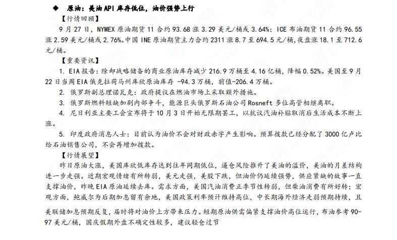 标题:广发期货早知道:短期原油供需偏紧支撑油价高位运行,焦煤盘面将继续表现强势