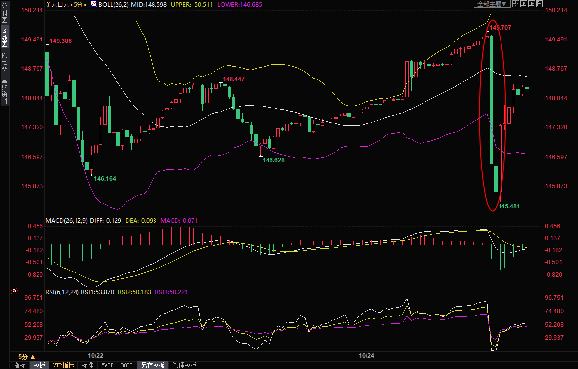 上周五纽约时段,美元兑日元盘中也一度快速下次逾580点,从逾32年高点151.94附近,跌至146.16附近,收报147.60附近。交易员和策略师当时表示表示,日本当局可能在市场上阻止该国备受打击的货币大跌。Corpay首席市场策略师Karl Schamotta上周五(10月21日)表示,“我认为是干预所致,我们看到大量美元卖盘,日元几乎直线跳涨,空头受到挤压。”