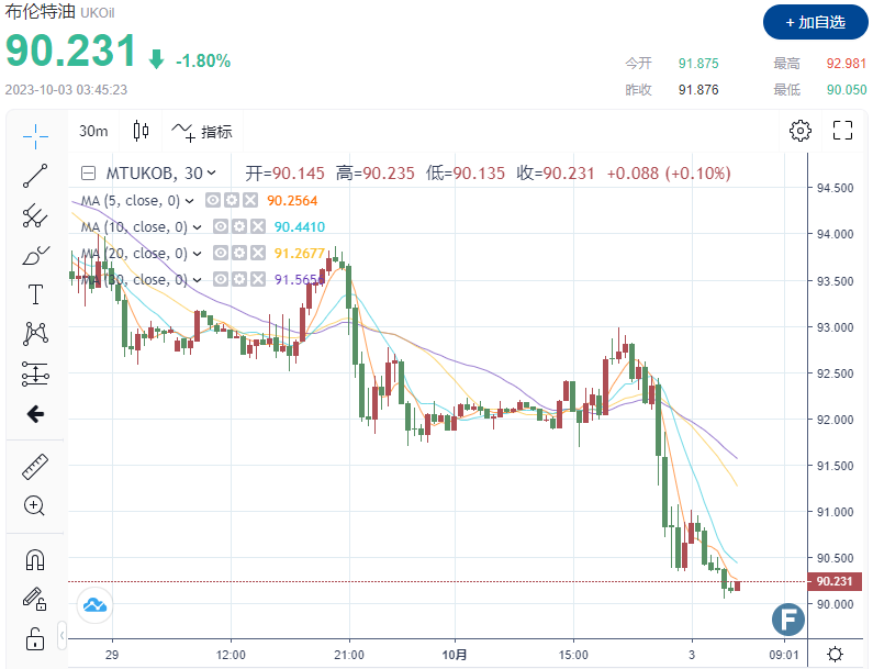 由于美元走强,交易商因担心原油供应增加和高利率导致需求压力而获利了结。周一(10月2日),油价下跌约2%,至三周低点。