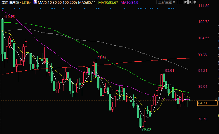 10月25日(周二)亚市盘初,美油交投于84.81美元/桶附近;油价周一在震荡交投中收低,数据显示9月亚洲需求仍然乏善可陈,而且美元走强打压油市,但美国企业活动数据疲软缓解了对更激进加息的预期,并限制了油价跌幅。