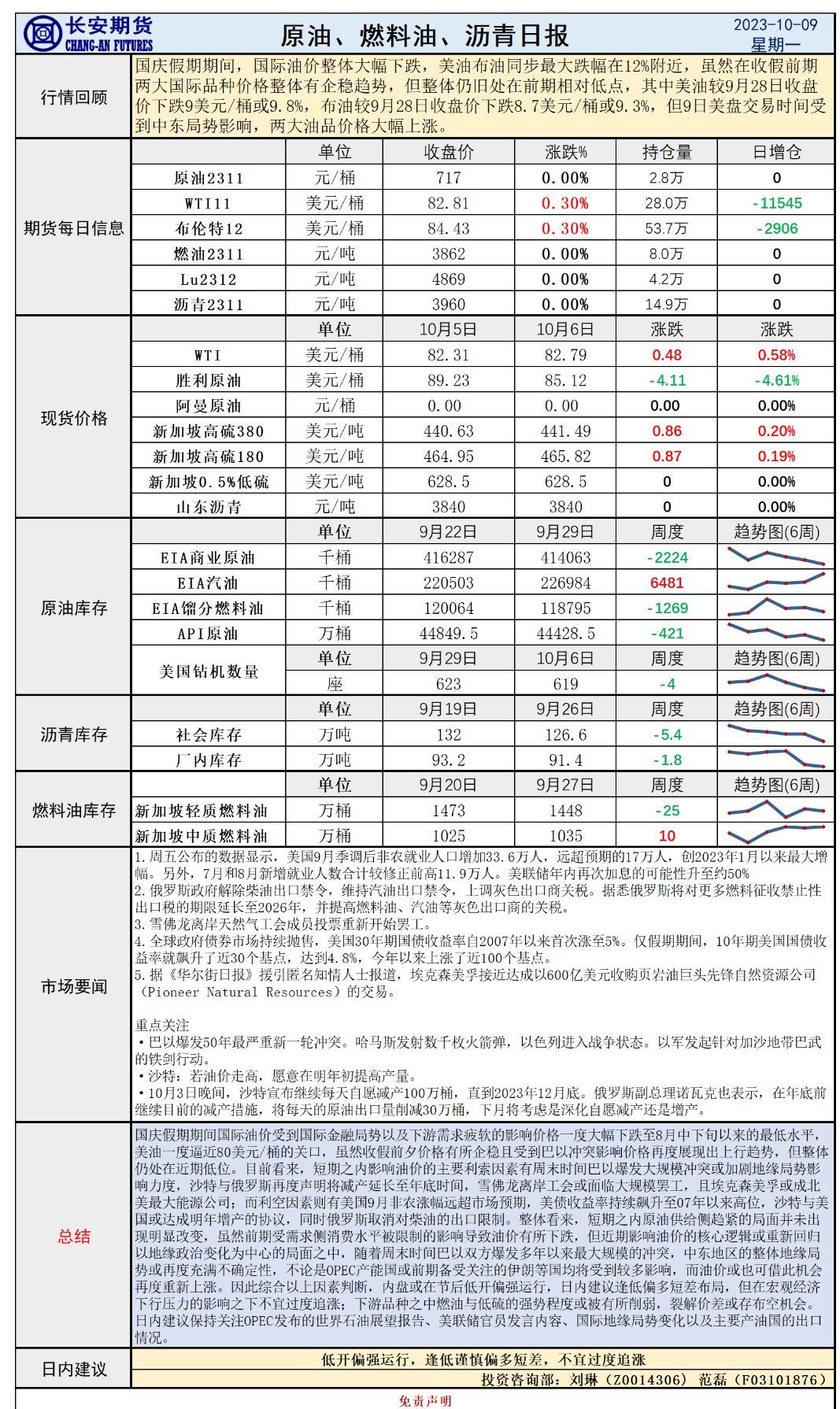 标题:长安期货10月9日原油早评:中东局势再度爆发,内盘或反应假期波动后偏强运行
