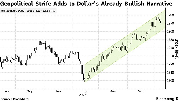 美元兑多数主要货币在亚洲开盘后走强,外汇交易员对以色列境内哈马斯发动的令人震惊的袭击做出反应。
