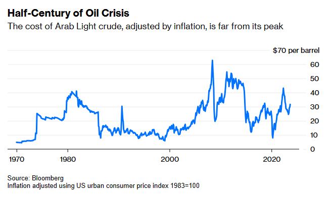 彭博社专栏作家Javier Blas周六撰文称,历史不会重演,但往往会押韵。在全球第一次石油危机爆发50周年前夕,很容易将2023年10月与1973年10月相提并论:对以色列的突然袭击和油价上涨。但相似之处仅限于此。