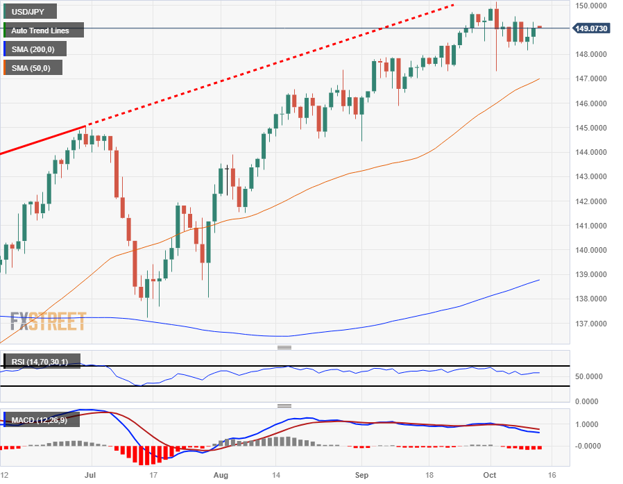周四(10月12日)亚市早盘,美元/日元成功收复149关口后,继续维持动能。美国生产者价格指数(PPI)和联邦公开市场委员会(FOMC)会议纪要未能对美元产生有意义的推动,汇市摒息等待美国消费者物价指数(CPI)数据的到来,大幅上涨将导致交易员在短期内大量涌入美元,通胀数据仍将是本交易周后半段市场的主要驱动力。技术分析称,美元/日元短期目标为149.60。