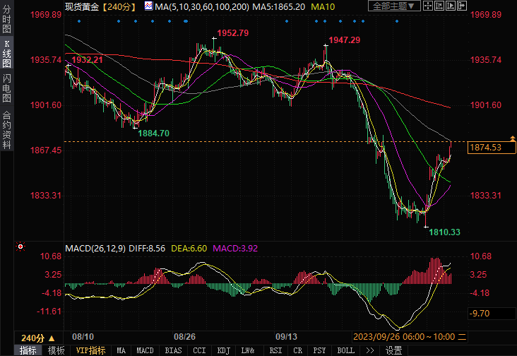 现货黄金维持日内强劲升势,目前金价已经站上1870美元/盎司,日内大涨逾12美元。FXStreet分析师Dhwani Mehta指出,黄金价格正在为下一轮上涨蓄势待发,目标是1880美元/盎司。
