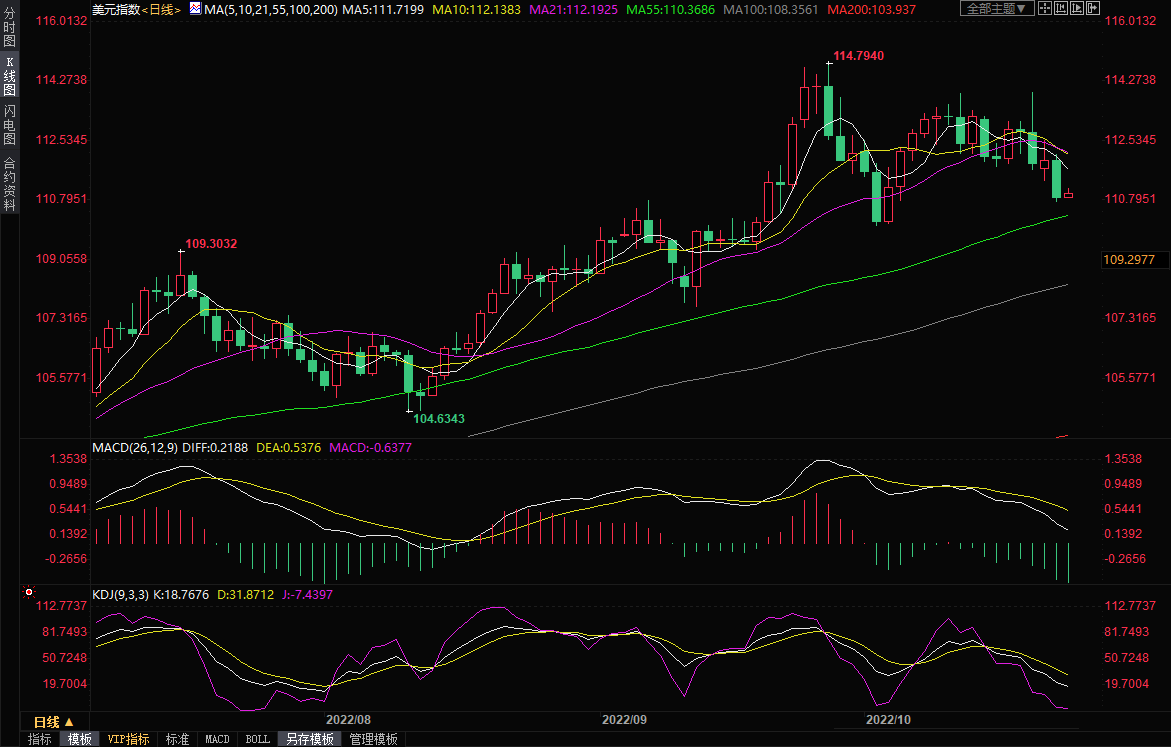 【美元跌至三周低点】周二而美元跌至三周低点,收报110.88,跌幅约0.99%,为近一周最大单日跌幅,因为美国经济数据转弱,对美国未来加息步伐的预期降温。