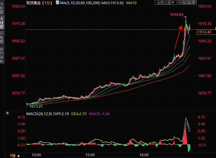 现货黄金持续反弹,日内接连突破1870以及1880两大关口,最高触及1888美元,为9月27日来最高水平,日内涨幅达到20美元,超过1%。