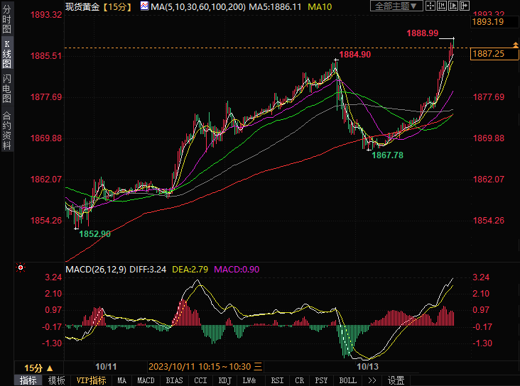 现货黄金维持日内强劲升势,目前金价正逼近1890美元/盎司关口,日内大涨近20美元。