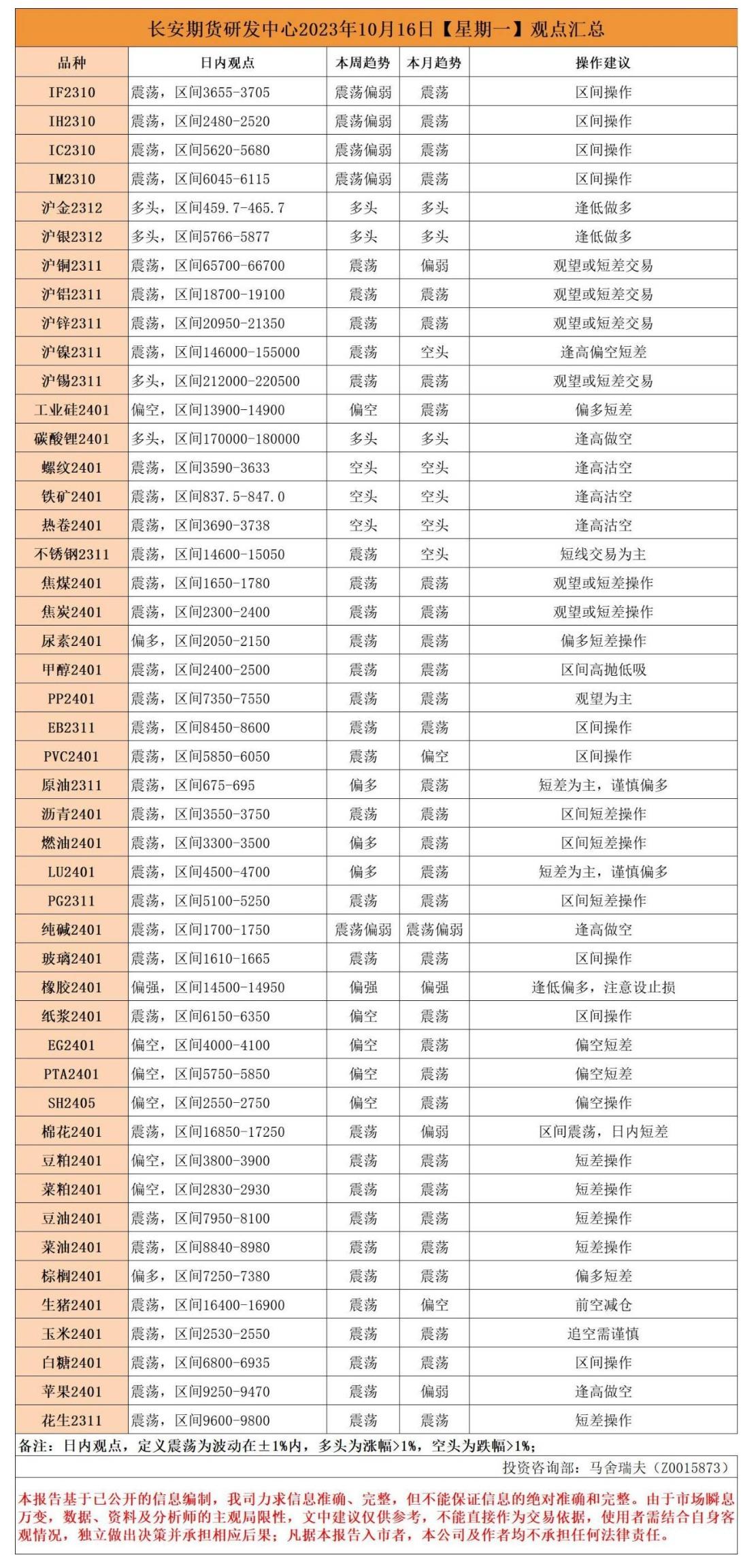 标题:长安期货10月16日早间看盘