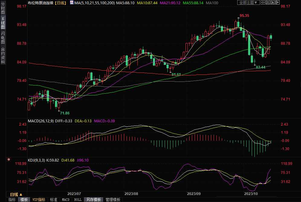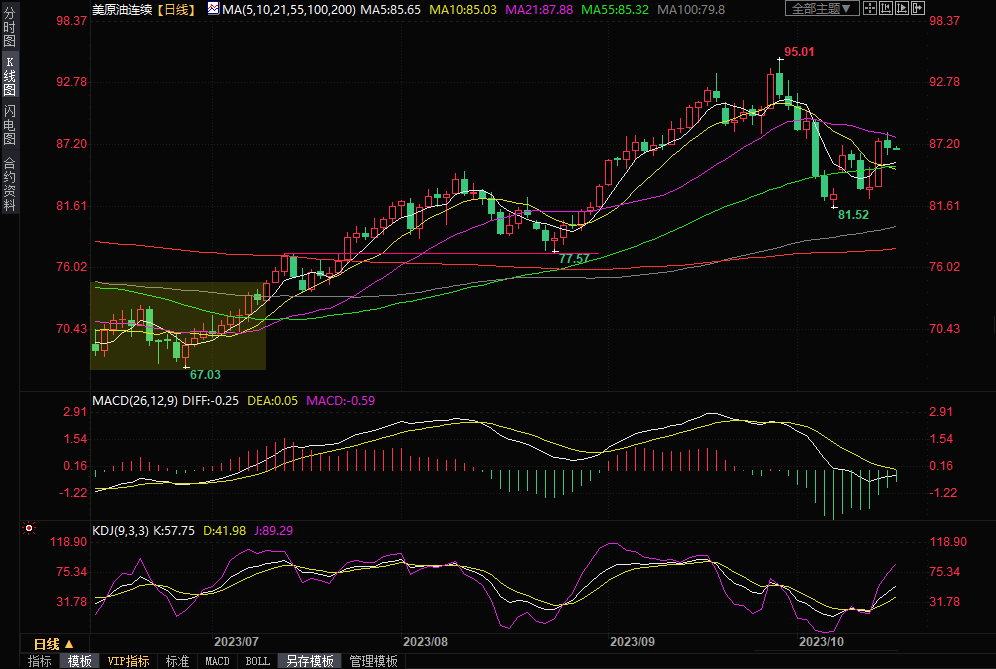 WTI 11月原油期货收跌1.03美元/桶,跌幅1.17%,收报86.66美元/桶。